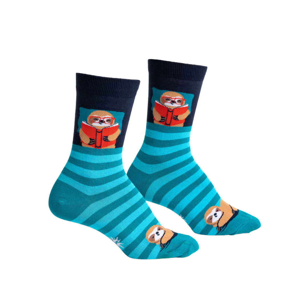 Relájate con estos calcetines que representan perezosos lectores somnolientos: ¡son los compañeros literarios perfectos para el tiempo libre de tus pies!